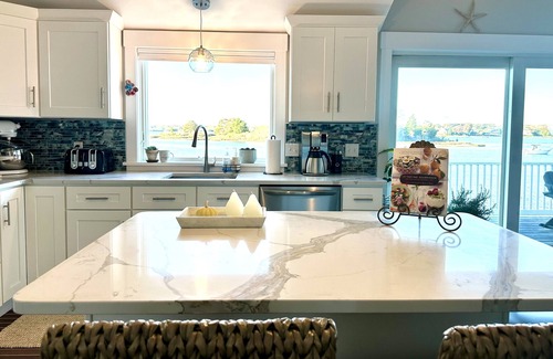 My kitchen is well stocked, so spending an evening in creating an Instagram worthy meal is a breeze. Or order take out & eat on the 30’ deck that has a 180 degree view of the bay.