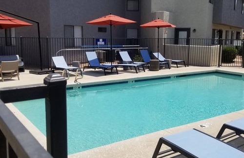 Yes, this Mesa Riverview Townhouse has a swimming pool. Check the Facility Overview section for details about the pool and other available facilities.