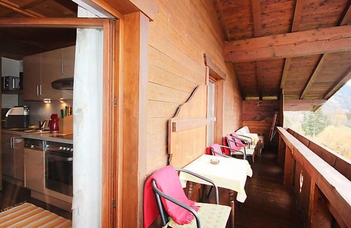 5-room apartment 100 m2 on 1st floor. Spacious, beautiful and cosy furnishings: entrance hall. Living/dining room with dining nook and satellite TV (flat screen). Exit to the balcony. 1 room with 1 bed, 1 double bed and hand-basin. 2 double bedrooms, each room with hand-basin and shower. Kitchen-/living room (oven, dishwasher, 4 ceramic glass hob hotplates, toaster, kettle, microwave) with dining table, radio and CD-player. Exit to the balcony. Sep. WC, bath/shower/WC. Balcony. Balcony furniture. Marvellous panoramic view of the mountains and the valley. Facilities: hair dryer. Internet (WiFi, free). Please note: smoke alarm. Automatic coffee machine and coffee filter available.