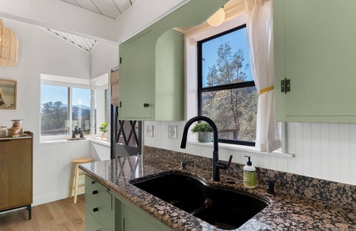 Welcome to Black Bear Riviera, your Hibernation HQ. Serenity abounds with the quiet sounds of nature and babbling waters of Tillie Creek mere steps away. Unwind in the hot tub with sweeping views of the Sierra Nevadas & Lake Isabella. Vintage charm and modern amenities provide all you need to relax and revitalize after a day of hiking, white water rafting, skiing or exploring local shops & attractions.