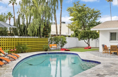 MID-CENTURY MARVEL: HEATED POOL + HAMMOCK + MORE is located in Scottsdale. MID-CENTURY MARVEL: HEATED POOL + HAMMOCK + MORE provides accommodation, featuring Bedding/Linens, Child Friendly, Laundry, among other amenities. This House features Bedding/Linens, Child Friendly, Laundry, to make your stay a comfortable one.