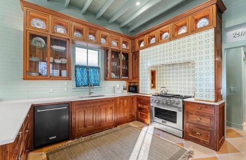 Featured on Happy to Be Home with the Benkos on the Magnolia Network, this 2BR, 2.5BA retreat sleeps 6 guests and blends historic charm with artistic design. Custom reclaimed wood cabinets, painted floors, and handcrafted Talavera tiles add unique character. Perfectly situated in the historic district of Beaufort, making this home centrally located to all main attractions. Hunting Island Park pass included! Enjoy a fresh exterior and a welcoming front porch. Book your stay today!