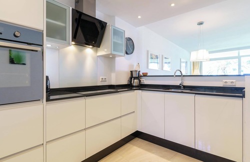 The "Mijas Costa Modern 2 Bed Apartment" is located in Mijas Costa on the Costa del Sol and overlooks both the sea and the mountains. The modern 71 m² holiday apartment consists of a living/dining room with a well-equipped kitchen with dishwasher, 2 bedrooms and 1 bathroom and can therefore accommodate 4 people. Additional amenities include Wi-Fi suitable for video calls, air conditioning, a washing machine as well as a TV.