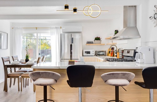 Enjoy a stylish experience at this centrally-located place. 5 minute WALK to nearby plaza with grocery stories and local restaurants!!! Great for family and friends reunion. A warm and welcoming place home away from home.