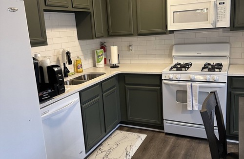 kitchen is equipped with Keurig coffee maker, Pots, pans and most cooking utensils for a comfortable stay...