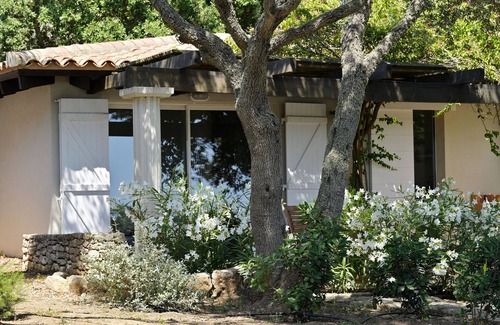 Standing south-facing mini-villa, in a pretty 4-star tourist residence with exceptional views of the citadel of Bonifacio, Sardinia and the sea.(very peaceful 3 hectare property, planted with century-old olive trees). Shared heated swimming pool with panoramic views of the citadel of Bonifacio, Sardinia and the sea. In the far south of Corsica, facing Bonifacio, nestles in the maquis of bewitching essences, between sky and sea, your mini-villa, the privileged place of your stay in Corsica. You are then the envied witness of the changing spectacle of the two-thousand-year-old city perched on its white cliffs plunged in water. In the distance you can guess, Sardinia is so precise. In this preserved natural setting, where only a few dry stone walls and olive trees are admitted, there is a perfectly and pleasantly furnished mini-villa. Living room with two sofa beds, air conditioning, wifi, TV, fully equipped kitchen (dishes and utensils), large oven, fridge freezer, 4-ring stove, dishwasher, washing machine at reception, microwave, grill bread, coffee maker, kettle, iron, bathroom with shower and / or bathtub, wall-mounted hairdryer, magnifying mirror. Two bedrooms (160 or 140 bed) and one bedroom (80 or 90 bed), safe, terrace with teak garden furniture, barbecue, garden. Independent entrance, parking, WiFi at the swimming pool.