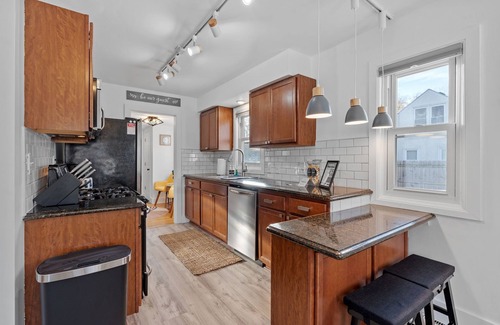 Welcome to Richfield Gem, offering 3 bedrooms and 2 bathrooms comfortably accommodating up to 6 guests (and your furry friend!) Designed with cozy in mind for your family gatherings or getaway with friends, brand new beds are ready to welcome you and the beautiful kitchen is equipped with all of your needs for your home away from home. Gather to enjoy coffee and conversations in the spacious living room or dining area filled with sunshine through the East-West facing windows. Check out the lower level den with a wet bar, wine fridge, and 4 in 1 game console. Challenge someone to a game of pool or catch a movie on the big screen. Outside you'll find patio furniture, a grill and spacious backyard - fully fenced so your dog can roam free!