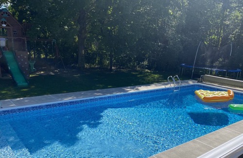 Enjoy country living while being close to Saratoga. Our home has a large heated salt water pool, patio, fire table, grill in the comfort of a quiet neighborhood. The open floor plan is great for gathering and relaxing or cooking a nice meal.