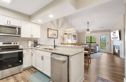 This beautifully renovated condo offers both comfort and functionality, making it the perfect base for an unforgettable getaway. Enjoy breathtaking views of Table Rock Lake from the covered balcony, where you can unwind and embrace your vacation. The condo includes a fully equipped kitchen, a dining area, and a seasonal fireplace.