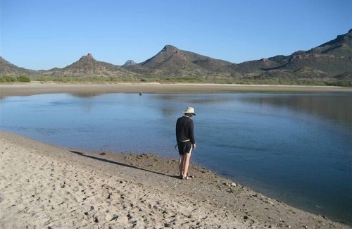 Experience miles of beautiful sandy beach and gorgeous sunsets over the Tetakawi mountains. You can have your beach experience from the living room of this condo or walk across the grass to sit in the sand and play in the mild surf. You'll see dolphin swimming daily in the bay. A protected estuary with abundant wildlife is a pleasant walk down the beach. You can kayak, sail or windsurf from the beach just in front of the Bahia Delfin complex.