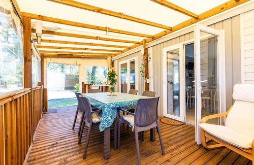 Mobile Home 'Bungalow Grand Confort' with Shared Pool, Private Terrace and Air Conditioning | RV Rental in Andernos-les-Bains
