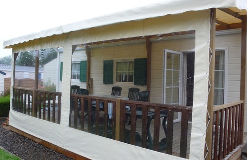 The mobile home is located on private land of 200 m2 calm and peaceful; The 18m2 terrace is covered and has a garden. Barbecue and garden shed provision. heated pool 15 June to 15 September. We also have 3 bikes available
