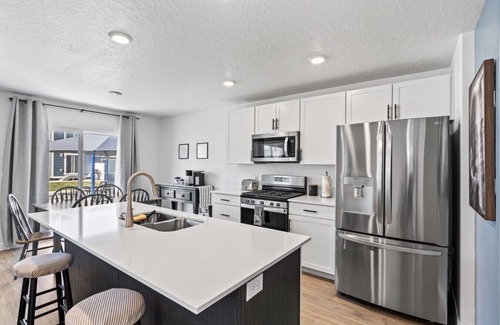 Be one of the first to stay in this new modern 3 bedroom, 2 1/2 bath home. The home is bright, clean, and spacious with a private entrance, enclosed 2 car garage and no shared spaces. The neighborhood is very safe and family friendly. You'll love the Utah themed decor throughout, adding a touch of local charm to your stay. In the summers, enjoy access to the pool and amenities. This home is perfect for travelers, business conferences and families visiting Utah.