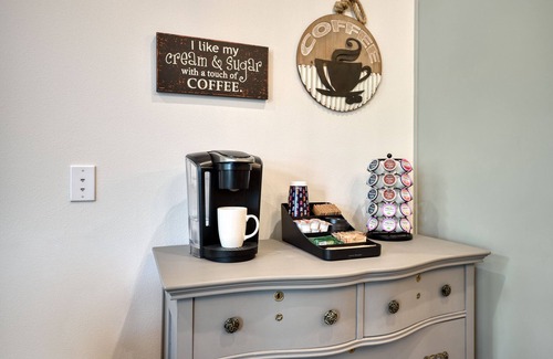 *Kitchen – Fully stocked with Dishes/glassware/silverware, Serving Utensils, Grilling utensils, Full set of kitchen and steak knives, Keurig Coffee / Tea station, Condiments – Olive Oil, Avocado Oil, salt, pepper, organic spices, mustard, ketchup, mayo, Paper towels, sponges, dish and hand soap, Dishwasher w/ dishwasher detergent, Microwave, Small appliances – toaster, blender, Gas stove and oven