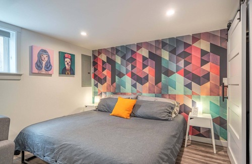 Modern studio with private entrance, perfect for couples and business travelers. Plush king-size bed, sitting area, kitchenette, and modern bathroom with essentials. Home gym available to our guests for an additional fee.