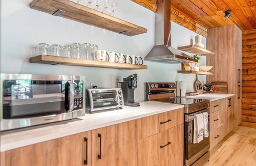 No need for a two-hour drive to Blue Ridge—this authentic cabin experience awaits you right at the city's edge. Professionally designed and newly updated inside and out, the cabin boasts 6 spacious bedrooms and 5 full bathrooms, all reflecting a modern, minimalist, and stylish aesthetic with brand-new appliances.