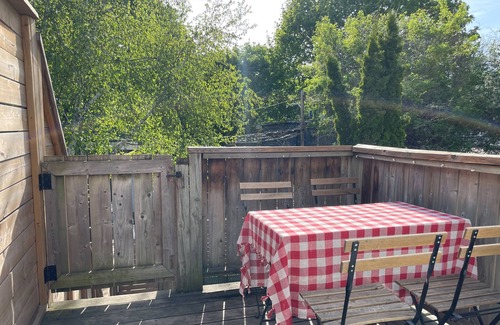 Enjoy your stay at this historic property home in Toronto's Riverside Village. Located on a quiet neighbourhood street, this bright and spacious 2-bedroom private apartment has everything you would need, including a dishwasher, cooling/heating, big flat screen TV, home office, and a back deck to enjoy all to yourself. Steps away from Toronto's Queen St, you are minutes in walking distance to numerous cafes, restaurants, and the streetcar line for easy transportation to anywhere in the city!