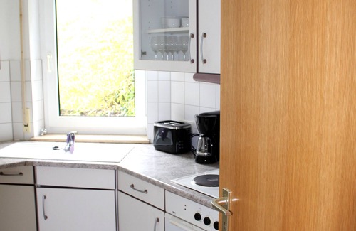 The apartment is located above the spa park and has a sun terrace, a carport parking space, small lockable cellar z. B. for bikes, WiFi, TV and a washing machine. Towels and bed linen are provided.