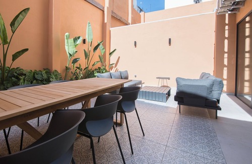 Luxurious suite in the heart of Valencia, next to Ángel Guimerá. Enjoy a spacious private terrace with an outdoor lounge. Features 2 double bedrooms, 1 full bathroom, a fully equipped kitchen, and a bright living room. Recently renovated and perfect for up to 4 guests. Experience Valencia in style and comfort! Located in the heart of Valencia, next to Ángel Guimerá, this elegant refurbished property offers everything needed for an unforgettable stay.