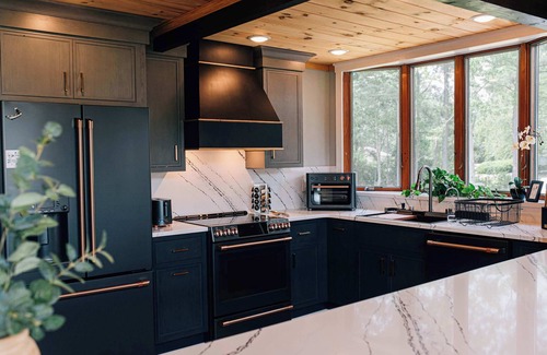 Inside, enjoy full access to all living areas, including the beautifully designed great room with soaring ceilings and panoramic windows, a modern chef’s kitchen fully equipped for entertaining, and thoughtfully appointed bedrooms that promise restful nights. Whether hosting a family gathering or retreating into nature, the space is entirely yours.