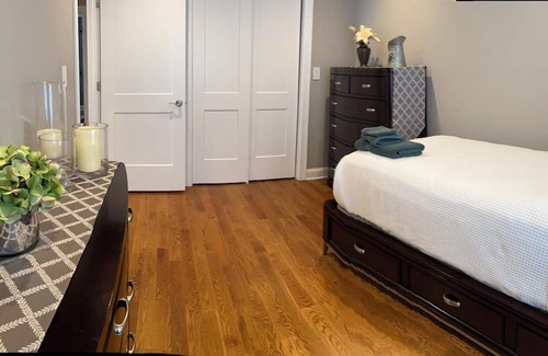 This 3-bedroom apartment is a perfect home base for your Northern NJ/ NYC adventures. Step inside this immaculate and modern property and you'll find a comfortable and calming retreat that will make you feel right at home. The bedrooms are tastefully furnished with a queen bed, a full bed, and a twin bed, ensuring a comfortable night's sleep for all guests. With amenities like WiFi, full size washer and dryer, AC, heating, and linens, your stay will be excellent and hassle-free. The 2 bathrooms provide convenience and privacy. Whether you're exploring the city or simply relaxing indoors, this superb apartment is the ideal choice for your vacation. We're happy to assist with any questions while you stay at our apartment.