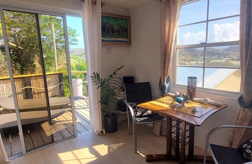 This artist designed and built, cute little hideaway up high on a breezy hill, commands views of the mountains in the distance. Christened The Nest because of the array of birds in the trees around it. Artistically designed for two, perfect sundeck, romantic and very private. Surrounded by a magical garden of palms and orchids yet situated in the heart of the busiest side of Grenada. The most secluded and prettiest beaches are all within easy reach and restaurants, bars and a bowling alley are a stroll away.