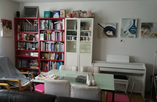 Modern decoration, bright, spacious and sunny space with large windows. Mountain View. Quiet area, rural environment. We are lovers of nature and animals. In our house your pets are welcome. Outside there is a closed, covered and safe patio. We have blankets and feeders for your stay.