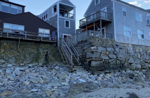 Renovated top floor apartment in the heart of the downtown Rockport historic district on the water with private beach access (seasonal) and parking. Large open kitchen with center island table and cathedral ceiling surrounded by reclaimed wooden beams. Living room opens to deck overlooking water. One master bedroom and private full bathroom. One full guest bathroom. Large loft with additional beds and play/work space. (ladder to loft and low ceiling height may not be ideal for use by all guests). Central AC/Heat, heated bathroom floors. All new appliances, furniture, fixtures, etc. Owned and operated by the host.