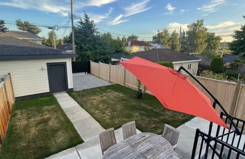 Stay in a family friendly modern (2025) duplex with free parking. Fast wifi, a/c, radient in floor heating, work station, children's toys and high end Miele appliances and in suite washer/dryer. Minutes from everything Vancouver has to offer including UBC, Granville Island, the airport and downtown. The neighborhood is extremely walkable and safe. Kitchen is fully equipped and a gas stove/oven. We respond within an hour. Local tips available upon request. Early luggage drop-off.