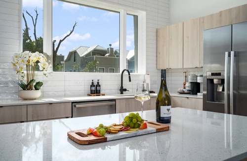 The well equipped kitchen and coffee bar are perfect for a leisurely stay or enjoy a variety of restaurants and entertainment within walking distance or a short car ride.