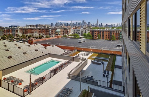 Yes, this Hoboken apartment has a swimming pool. Check the Facility Overview section for details about the pool and other available facilities.