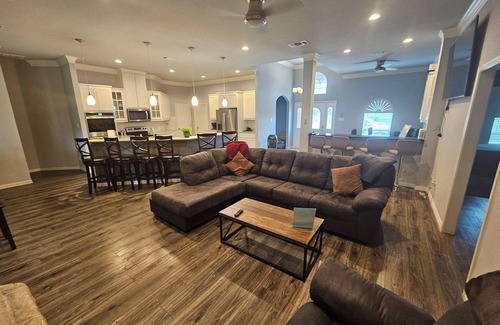 You are minutes away from Dallas Cowboys AT&T Stadium, Texas Rangers Stadium (Globe Life Field), TCU, the Fort Worth Stockyards, Billy Bob's, Downtown FW, Rodeo, Will Rogers, Dickies Arena, restaurants, supermarkets, malls, etc. This beautiful home is perfect for groups or ultimate sports fans. It has 7 large flat screens throughout the house, 2400 sq. ft. open concept with a fully functional kitchen, 2 car garage and a private back yard with a covered patio. Ultra High Speed Wi-Fi & Spectrum Cable TV. Smoking is no longer allowed in the house.