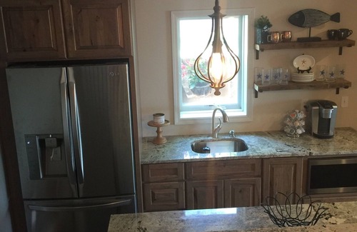 Families will have access to a private sandy beach with 100 foot dock. The lake is clear with shallow water, sandy bottom, and gradual decline which is great for children. Delight in evening activities with fires in the brick firepit.