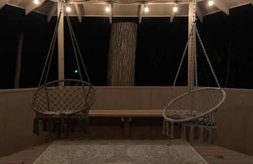 A beautifully updated cabin surrounded by 20 acres of woods, and plenty of space with everything you need to unwind and relax. A quiet retreat located in Delavan, WI and within 15 minutes from downtown Lake Geneva, and only 5-7 minutes from Williams Bay, and Fontana, which surround the beautiful Geneva Lake. Delavan Lake is right across the street from the entrance to this wonderful location. It's truly the best of both worlds to be in your own space away from it all and yet close enough to the best this area has to offer! Read a book in the gazebo with hanging swings or on one of two covered porches. The outdoor space also includes a patio with a fire pit, grill, and seating along with a table to dine at. The inside includes two cozy gas fireplaces, a washer and dryer, fully stocked kitchen, reading balcony, and several great work spaces. Stay in and watch a movie by the fire. Make yourself at home!