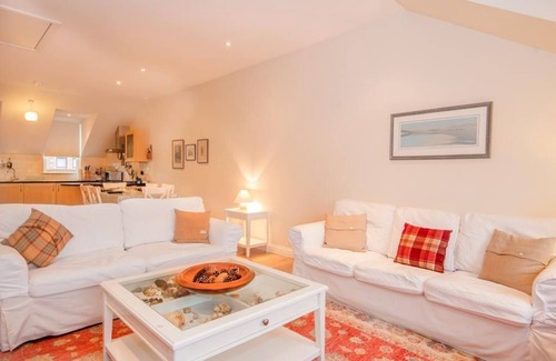 The master bedroom is furnished with a king-size bed, bedside cabinets, built-in wardrobes, en suite shower room. The twin bedroom has 2 single beds, bedside cabinets, built-in wardrobe. The family bathroom is equipped with a plumbed over-bath shower, underfloor heating and heated towel rail.