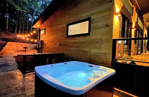 Get away from it all at the "Modern Mountain Getaway". This BRAND NEW modern mountain cabin is the ultimate in luxury and amenities. Gather with friends around the outdoor fire pit or relax in the hot tub surrounded by a canopy of trees. The inviting rear deck is the perfect place to relax and hang out around a gas table top fire. If you ever want to go inside, you will be treated with an upscale kitchen open to dining & living room, dreamy walk-in showers, super fast wifi & 65" smart TV.