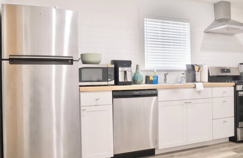 Recently upgraded and beautifully furnished throughout, this spacious and private three-bedroom home features an open floor plan with a modern kitchen, dining area, dedicated workspace, and a living room with 65” Smart TV.