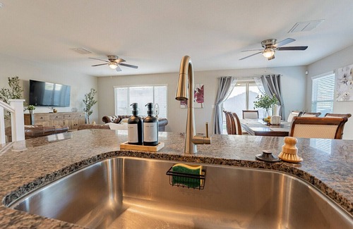 Welcome to Goodyear, AZ! Enjoy your stay in this home away from home - a 3 bedroom, 2 1/2 bath sanctuary equipped with all the comforts and modern amenities of your own home. Enjoy the convenience of parking in the garage and sprawl out on a choice of a twin & full bunk bed, queen size bed, and king size bed. Additionally, a fully stocked kitchen awaits you as well as an office desk and printer for all of your work needs. Spend your days here relaxed and at home.
