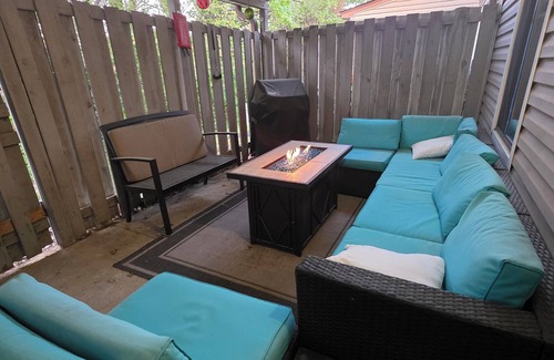 Escape to a welcoming 1-bedroom condo in High Point. This cool space features 1 king bed with upscale amenities perfect for a wonderful stay. Enjoy all the conveniences like AC, heating, ceiling fans, fast WiFi, washer/dryer and a fully stocked kitchen with top notch essentials. The bathroom includes a jetted shower with an exhilarating rain shower/waterfall option, towel warmer and a hair dryer for your comfort. The living room boasts a 65" TV with surround sound and reclining sofa while the main Master Bedroom has a 55" TV. Step out to the rear patio for some R&R and cozy up to the Fire Table or do a little grilling. Want to go for a swim then just walk across the parking lot to the clubhouse! Perfect for HPU or Furn Mkt guests or a romantic getaway.