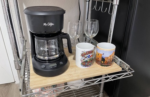 Kitchenette with microwave, mini fridge, and coffeemaker.