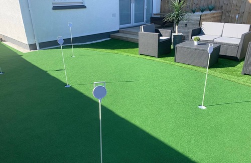 Recently renovated modern end terraced 3 bedroom house with amazing golf putting green in large enclosed private garden. This outdoor space is ideal for all golf lovers, and even those who don't play golf will have fun and enjoy this sunny outdoor space.
