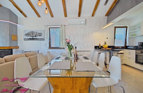 Villa Gloria Vita is located in the small village of Nova Vas, near Novigrad. A stay in this villa will provide you with the vacation you've been dreaming of for a long time, as well as a real wellness experience. In the courtyard of the villa you will find a swimming pool, while in the villa you will find a hydromassage tub, so you can relax regardless of the weather. The villa has 4 bedrooms and 4 bathrooms, it is intended for 9 guests and will gladly welcome pets.