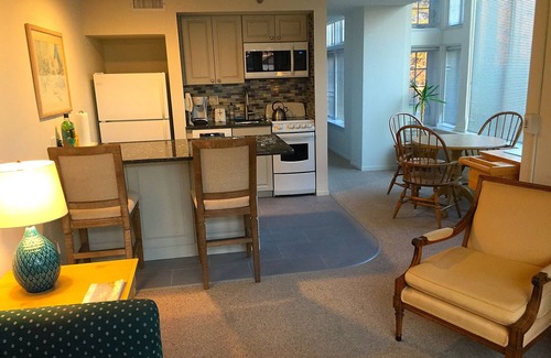 This is of the nicest units in the complex. We invite you to stay at our 1 BR loft corner unit, complete with cathedral high ceiling, brand new kitchen, fully updated bathrooms., and large living room with a pullout queen sized sleeper sofa.