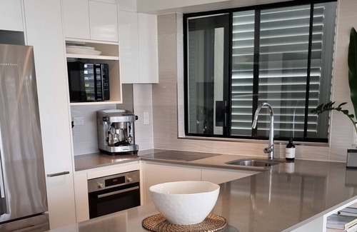 The fully equipped kitchen has everything you need: an electric cooktop and oven, microwave, dishwasher, and plenty of glasses, serving dishes, and appliances. Coffee lovers will appreciate both the Espresso machine and the Nespresso pod machine. Enjoy meals around the dining table or unwind in the lounge area with a large flat-screen TV featuring Foxtel, Netflix, and other streaming services. A Bose portable Bluetooth speaker and NBN broadband are also provided.