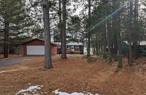 You're definitely not far from Moon Lake, in this waterfront home! Moon Lake is a smaller, private, no-wake lake situated just outside the city of Lewiston. The house itself has a gorgeous view of the lake. It features a seasonal dock, a fire pit, a paddle boat, and some kayaks to help enjoy the up-north lake experience. There's great fishing on Moon Lake during the summer and I'm told ice fishing is good during the winter. We have heard and seen many interesting birds from the deck.