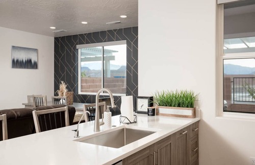 Welcome to the Moon Sage Retreat! Spend your days enjoying the surrounding landscapes and views or just relax. Rest comfortably in this luxury two-story home with 3 bedrooms, 2 full bathrooms and a half bath. Contemporary kitchen fully equipped with kitchenware and all that you need to prepare your meals. Two family rooms to spend time with family and friends. Step into the garage and game away with Pool & Foosball Table, perfect for your entertainment. Enjoy the outdoor patio for grilling with two cozy lounge wick chairs and your own private hot tub! Highly desirable area for golfers and outdoor enthusiasts. Close to hiking, biking, horseback and ATV trails! World famous rock climbing and repelling close by. Next door to the Tuacahn Amphitheater "Broadway in the Desert", and VIEWS of the Majestic Red and White Sandstone Mountains surrounding the St. George area AND so much more! Swimming pool coming soon, but don't let that stop you! Sand Hollow Aquatic Center is just across the street! Come on in and Stay Awhile.