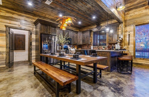 Moose Mansion, EV Outlet, swing set, hot tub is located in Broken Bow. Moose Mansion, EV Outlet, swing set, hot tub provides accommodation, featuring Child Friendly, Internet, Kitchen, among other amenities. This Cabin features Child Friendly, Internet, Kitchen, to make your stay a comfortable one.