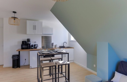 Cocoonr/Book&Pay agency offers this charming 37 m² flat in Bruz can accommodate up to 4 people. Located on the 2nd floor (no lift), it comprises a 28 m² living room with an open-plan fitted kitchen, a bedroom, a shower room and a 1,500 m² shared garden. Wifi (fibre optics), bed linen and towels included, we're waiting for you!