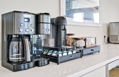 The second floor media room is complete with an oversized and overly-comfortable sectional sofa, smart TV, wet bar with ice maker and beverage refrigerator, and custom arcade game machine! From the media room, you'll access the expansive 2nd floor balcony that overlooks Sunset Beach and is outfitted with ample seating.
