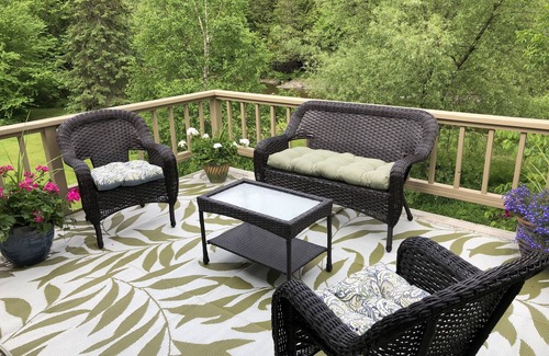 LOCATION! LOCATION! LOCATION!... The Riverside Cottage is located in the heart of the East Burke Village. This beautiful historical cottage is conveniently located within walking distance to the local restaurants, pubs, cafe's, Tiki bar, Kingdom Country store, Ice cream shop, Bike shop and gas market. More importantly, jump on your bike and go... you are on the trails in minutes!!! After a day on the trails or wherever your adventure takes you, shower outdoors, grill, entertain on the outdoor deck or sit around the fire pit and reminisce of the day...